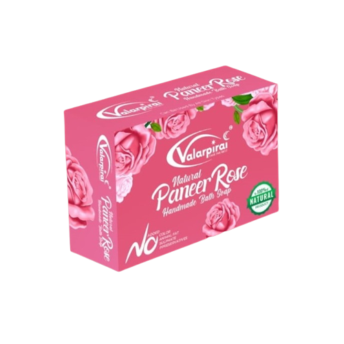 Our Panneer Soap is enriched with the natural essence of roses (panneer), blended with nourishing herbal oils to give your skin a refreshing and aromatic bathing experience. Known for its soothing and cooling properties, rose extract helps hydrate, tone, and brighten your skin while leaving behind a long-lasting fragrance.
