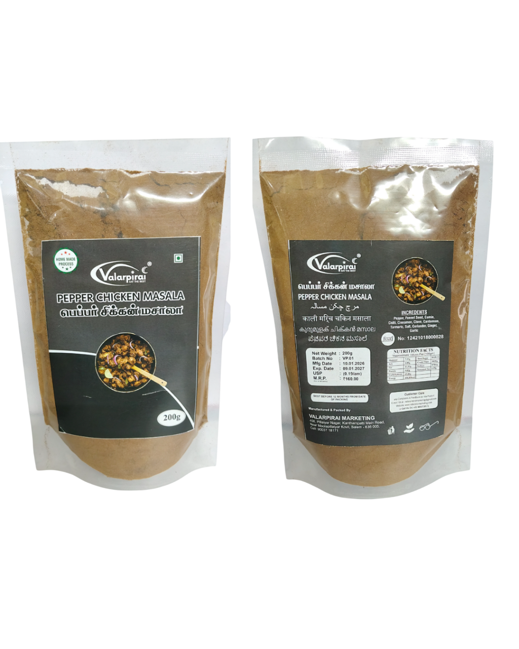 Our Pepper Chicken Masala is crafted from a blend of carefully selected, premium spices, perfectly ground and hygienically packed to preserve their bold aroma and authentic flavor. A kitchen essential, it adds a spicy, savory kick and rich depth to chicken dishes, curries, and everyday meals.