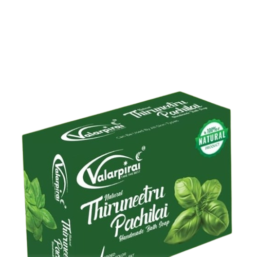Our Thiruneetru Pachilai Soap is enriched with the natural essence of Tulsi (Holy Basil), a sacred herb widely praised in Siddha and Ayurveda for its healing and purifying properties. Blended with nourishing oils, this soap gently cleanses, protects, and refreshes your skin, making it healthy, soft, and glowing.